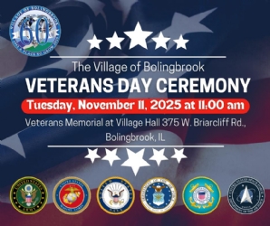 The Village of Bolingbrook and VFW Post 5917 will honor all veterans in a special ceremony on Tuesday, November 11, 2025 at 11:00 am.